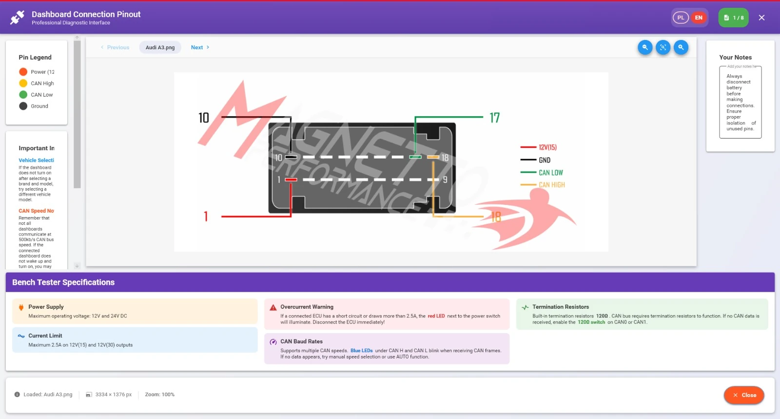 Moduł do urządzenia Magnetto Dashboard Test to innowacyjne rozszerzenie, które rewolucjonizuje proces testowania liczników na stole. Ten zaawansowany moduł umożliwia precyzyjną diagnostykę i analizę działania liczników pojazdów oraz innych urządzeń pomiarowych w sposób wygodny i skuteczny.